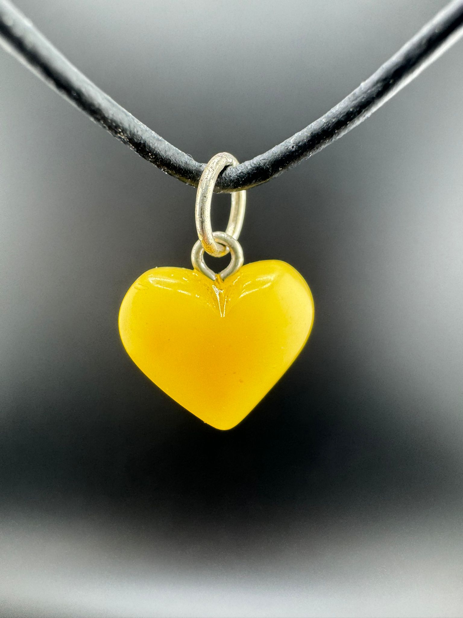 Sehr schönes Bernstein-Herz in einem sehr kräftigen Gelb.