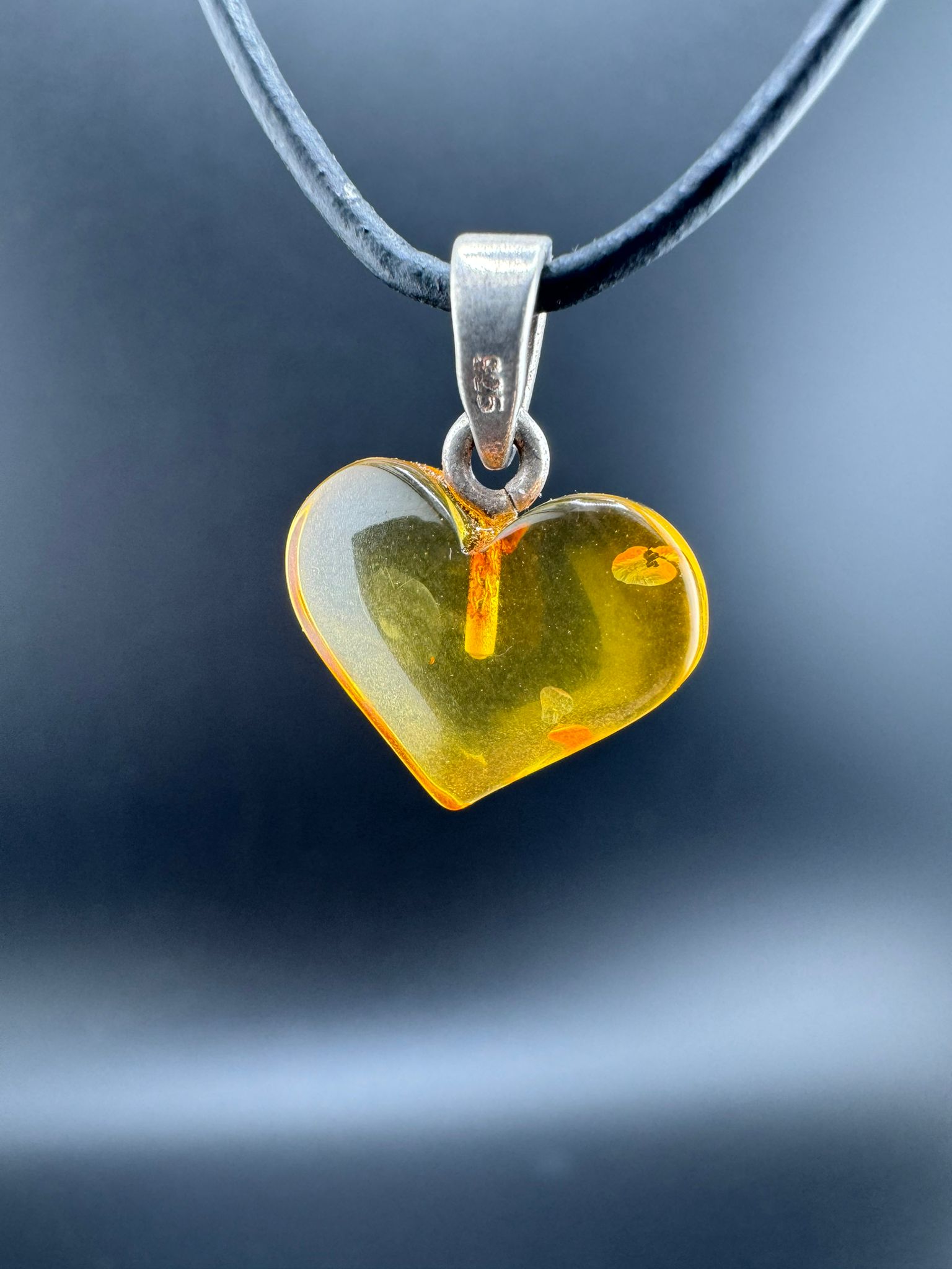 Sehr schönes Bernstein-Herz, sehr klarer Bernstein mit glitzernden Facetten.