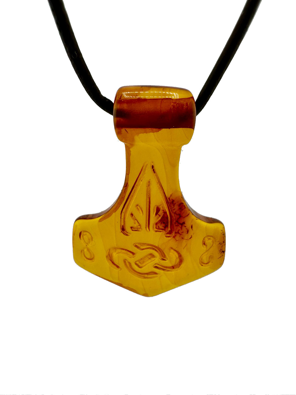 Entdecken Sie die Kraft des Bernstein-Thorshammers - Einzelstück. Mit seiner einzigartigen Verzierung und Lederband ist er ein wahres Schmuckstück. Seine Größe von ca. 32mm x 25mm x 5mm macht ihn zu einem kompakten und dennoch kraftvollen Begleiter. Verbinden Sie sich mit der Energie des Bernsteins und fühlen Sie sich stark und geschützt!