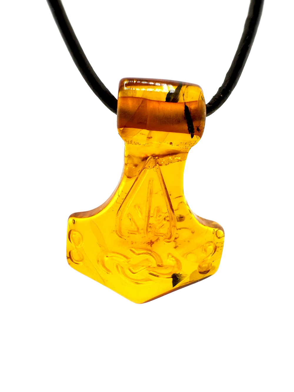Entdecken Sie die Schönheit und Kraft des Bernstein Thorshammers! Handgefertigt und einzigartig, ist dieser 33mm hohe und 23mm breite Hammer mit wunderschönen Ornamenten verziert. Der klare Bernstein verleiht dem Schmuckstück eine besondere Klarheit und Energie. Holen Sie sich dieses Einzelstück und spüren Sie die Wirkung des Bernsteins!