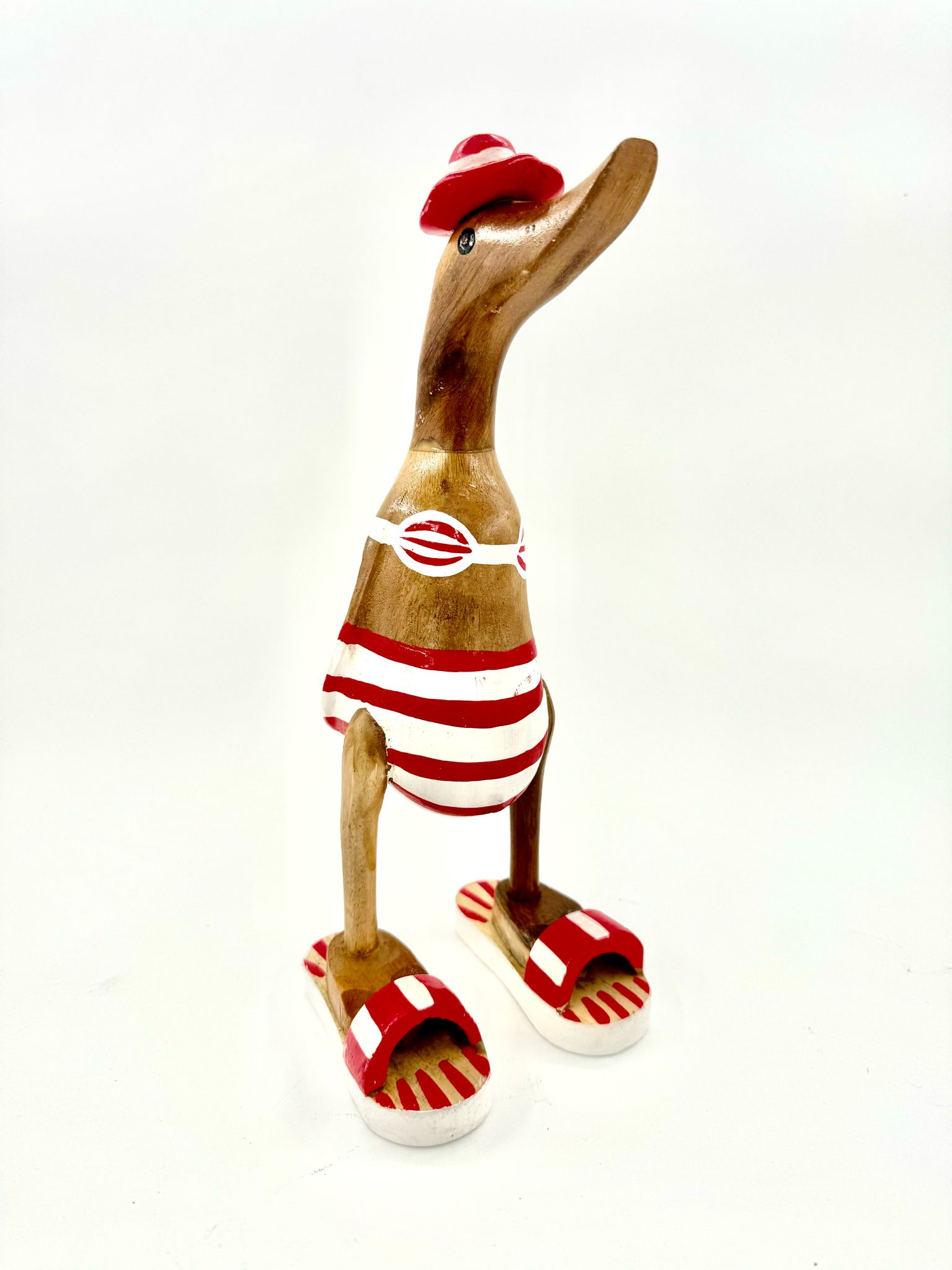 Klein, aber oho! Die Svenja - Holzente ist ein beliebtes Sammlerstück, das mit seinen liebevoll handbemalten Details begeistert. Mit einer Höhe von 25cm ist sie ein wahrer Hingucker und perfekt für alle Enten-Liebhaber. Und wer sagt eigentlich, dass Enten immer nur auf dem Wasser schwimmen müssen? Mit ihren coolen Badelatschen ist Svenja bereit für jeden Ausflug!