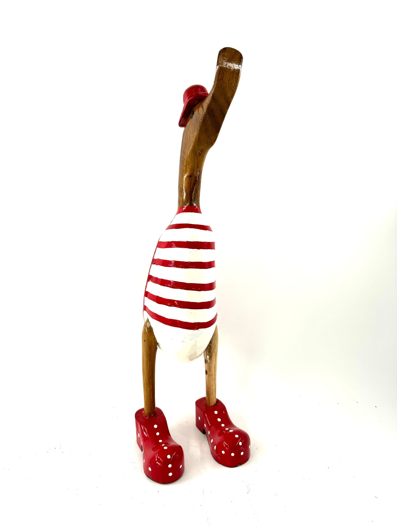 Entdecke Taddy, die liebenswerte 40cm Holzente! Mit ihrem rot-weiß gestreiften Gefieder verzaubert sie jeden und ist die perfekte Ergänzung für dein Zuhause. Ihr Lieblingsort ist das Wasser, wo sie gerne herumplanscht und mit anderen Enten flirtet. Hol auch du dir jetzt Taddy und bereichere dein Leben mit ihrer fröhlichen Art!