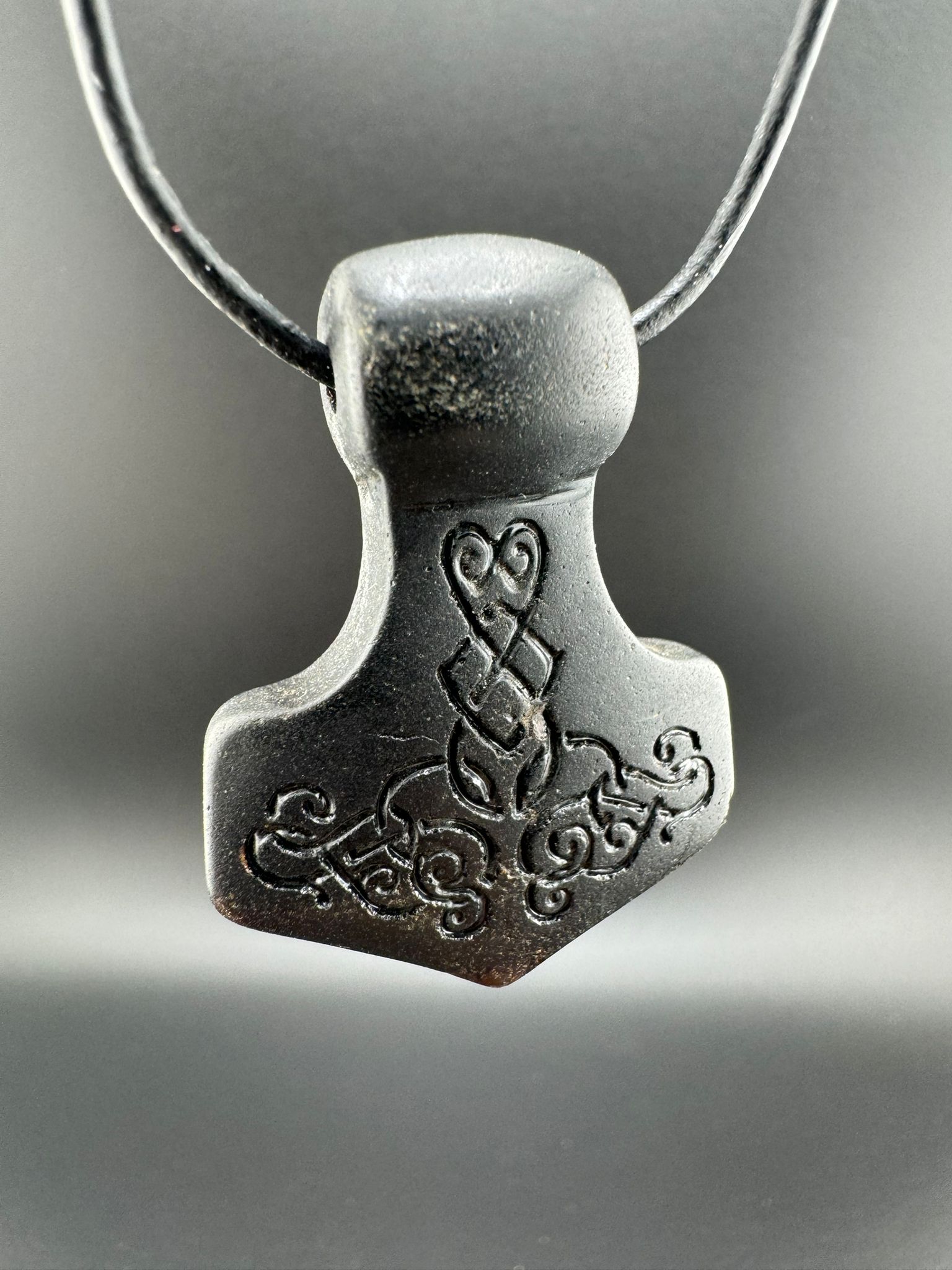 Bringe Kraft und Schutz in deinen Alltag mit diesem seltenen schwarzen Bernstein Thorshammer.