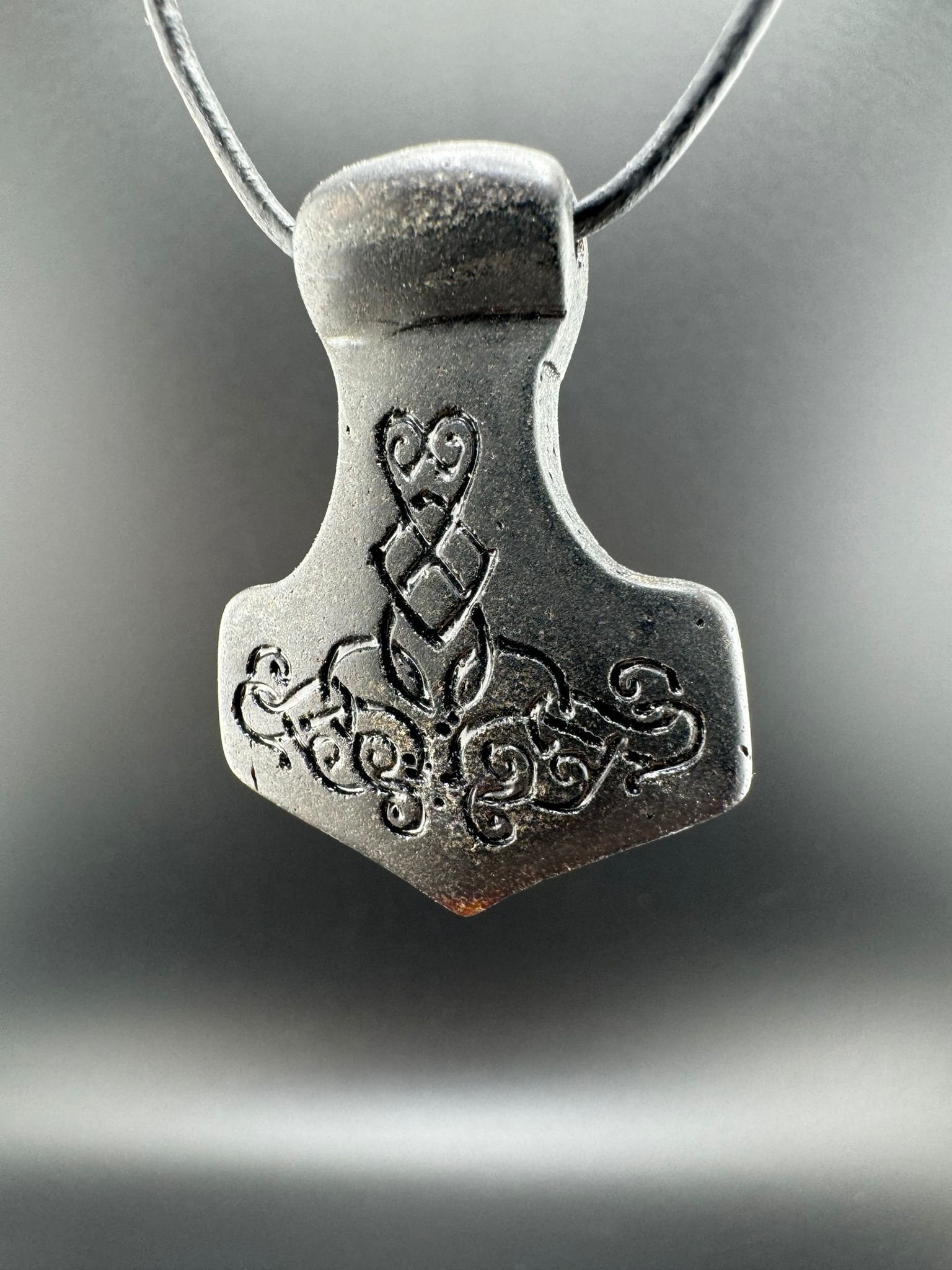 Bringe Kraft und Schutz in deinen Alltag mit diesem seltenen schwarzen Bernstein Thorshammer.